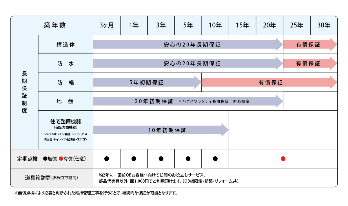 家は安心安全の元に成り立つ、保証も充実。地盤保証