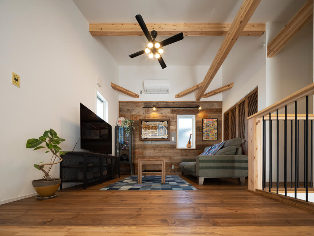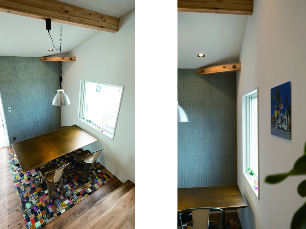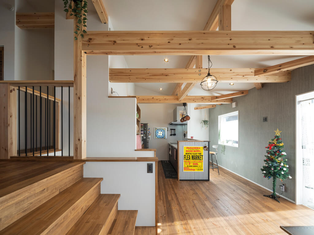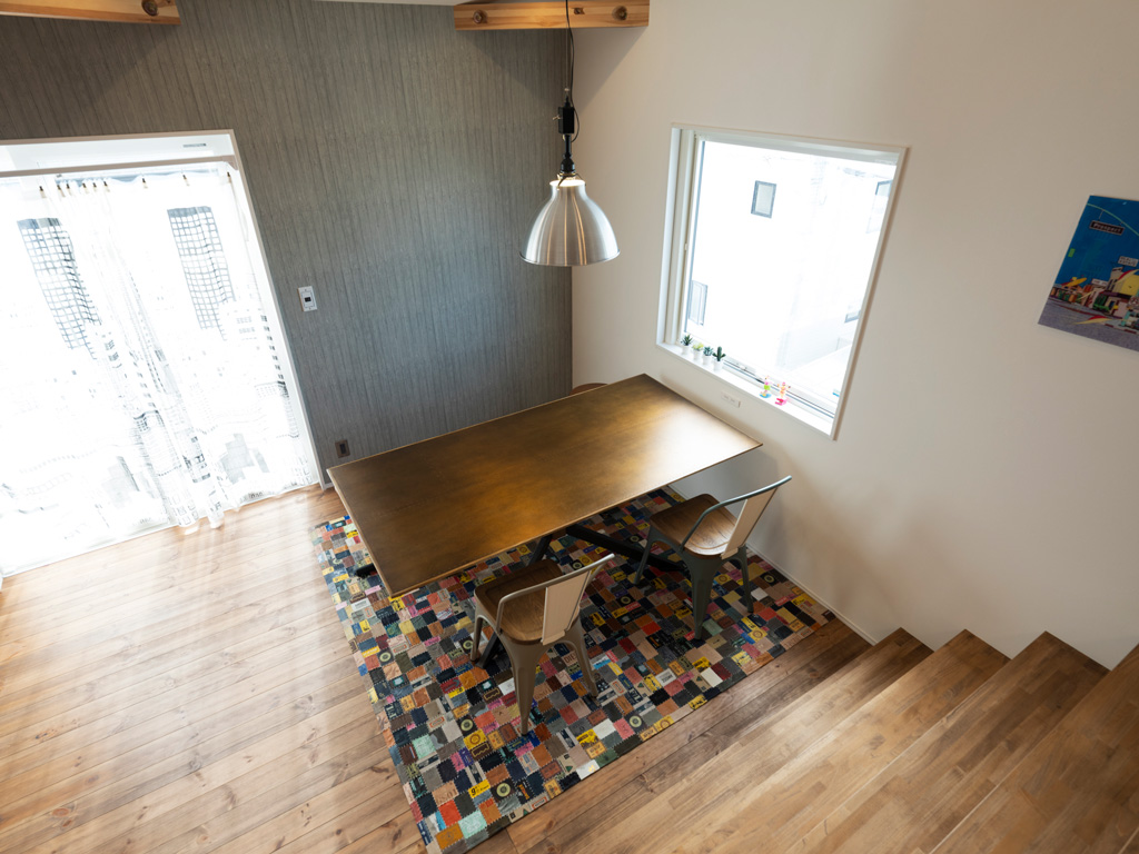 中古住宅でもいいよね」。家づくりを考え出した当初はそんな意見が出たことも。とはいえ、なにから始めたらいいかわからないことだらけ。そこで「家づくりセミナー」に参加したところ、とある住宅メーカーを紹介してもらいました。しかし、自分たちの思いが伝わらず、ただただ時間が過ぎてゆくばかり。「家づくりがなかなか思い通りに進まないのがストレスで。少しでも気分を変えようと、B・SHOPに家具を見にいったんです。そのときに“家を建てるんですか?”と声をかけてくれたのがコーディネーターの大導寺さんで」とご主人。もともと家具が好きで、お店のことは知っていたそうですが、「家を建てているなんて知らなかった」とのこと。自分たちが好きなテイストの家具を置いている店なら間違いないはず。そこで大栄ハウジングが手がけた家を実際に見せてもらうことに。「なにこれ」「こんな家、見たことない」。スキップフロアの間取りのユニークさ、家具と空間が織りなすかっこよさは2人の想像のナナメウエをゆくものでした。